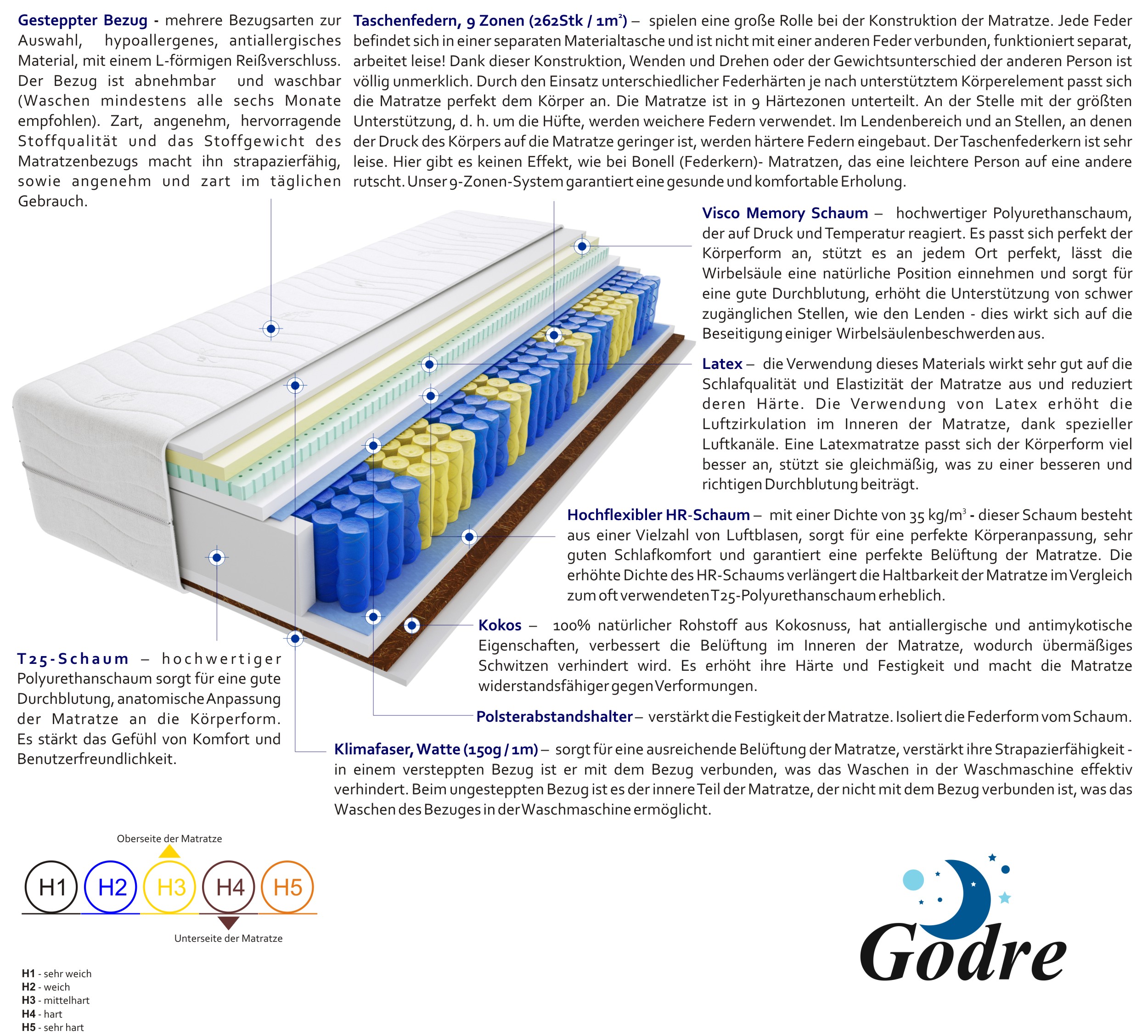 taschenfedern, hochelastischer-hr-schaum, latex-2-cm, visco-memory-schaum-2-cm, kokos, t25-schaum, klimafaser, filz, gesteppter-bezug