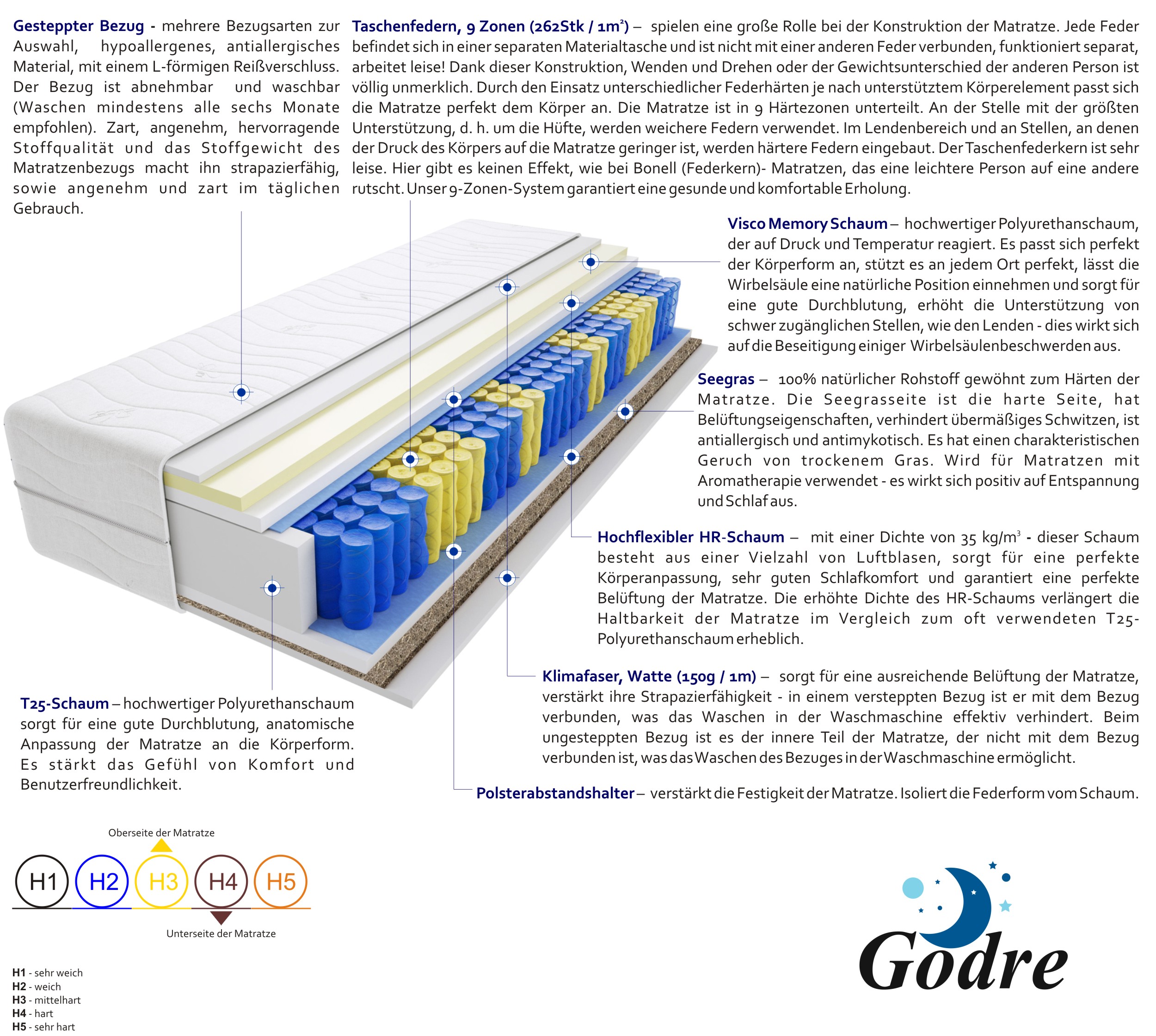 taschenfedern, hochelastischer-hr-schaum, visco-memory-schaum-2-cm, seegras, t25-schaum, klimafaser, filz, gesteppter-bezug